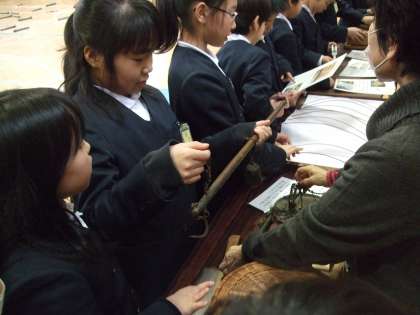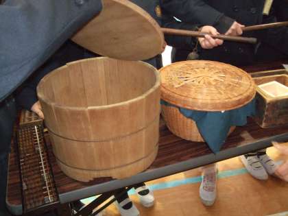 おひつやはかり等昔の道具を実際に手に取り、使い方を教えていただき興味