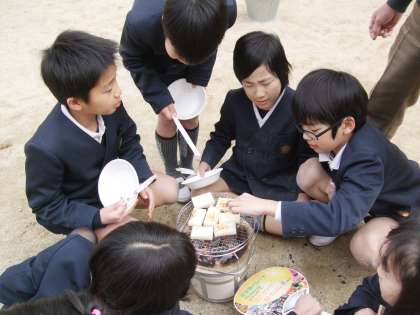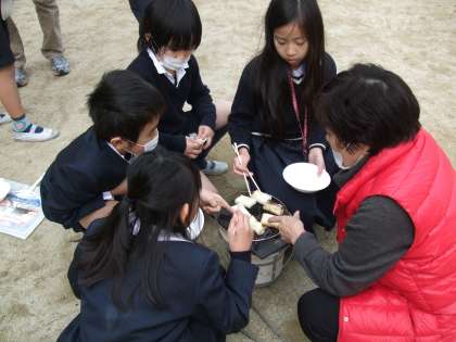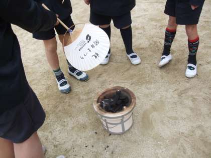後半は、七輪で火をおこして、お餅を焼いて食べます。