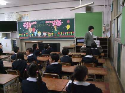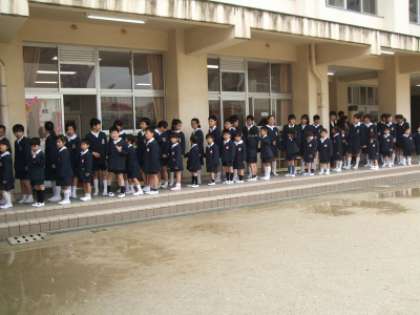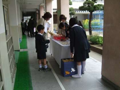 関目小学校では、新1年生は新6年生と手をつないで仲よく式