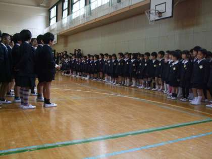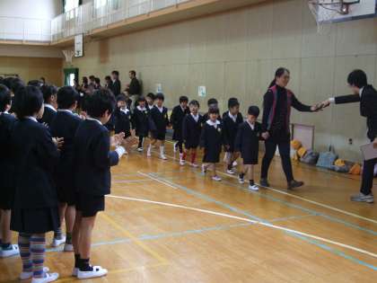 1年生がお兄さん・お姉さんの前に並び、大きな声で「よろしくおねがいします」と元気な声であいさつをしていました。