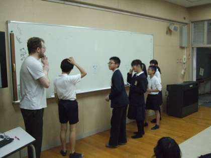 アルファベットの歌を歌ったり、英語の文を聞いて発音したりして、中学生の英語に向けてしっかりと勉強をしていました。