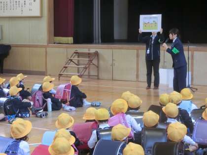 今日は1年生のために警察の方が来られて、下校指導がありました。自分たちで帰れるように、5つのルールを教えてもらいました。1年生は一生懸命聞いたので、5つのルールを守って、しっかりと下校してもらいたいですね。