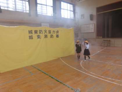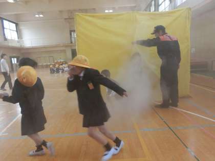避難訓練の後に、2年生はスモーク体験を行いました。