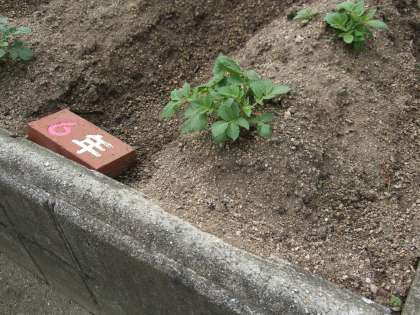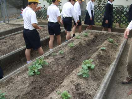 4月に植えたジャガイモが育ってきました。このまま順調に育って、6年生の児童のようにたくましくなって欲しいですね。