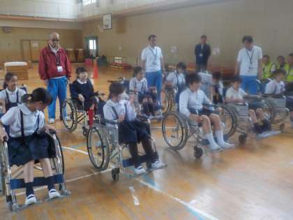 講習の後、自走体験をしました。自分一人で動かすことや小さな段差をこえる難しさを実感しました。