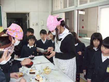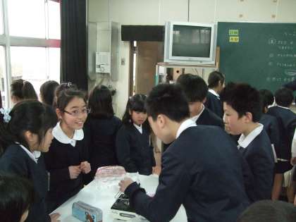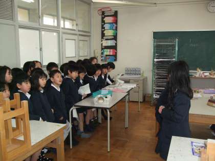 担任の先生に連れられ、高学年の活動の様子を興味津々に見入っていました。