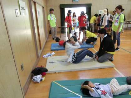 ニュースポーツ以外にも上体起こしや長座体前屈などの体力測定があり、どのブースも盛況で、みなさん楽しそうに体を動かしていました。