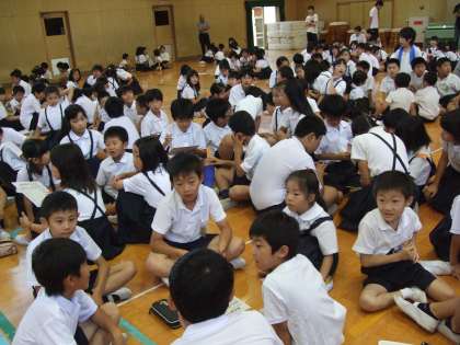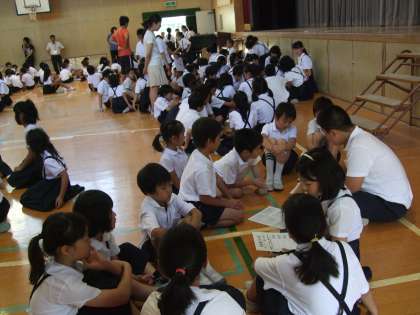 出題されるごとに、「え〜そんなんわからへん。」と言いつつ、どの先生かとキョロキョロ探しています。全問正解のチームはありませんでしたが、4問正解が1チームあり、みんなから拍手を送られていました。
