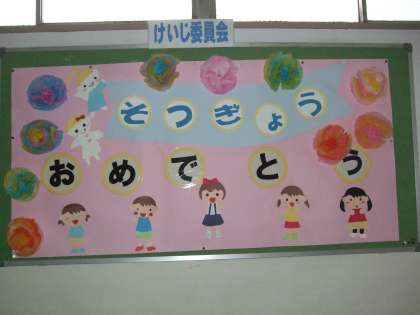 お祝いの気持ちを込めた掲示物ができ上がりました。