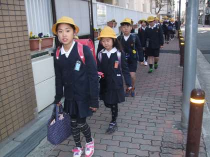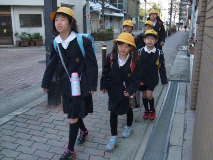 新班長は、どの子も誇らしそうに時々後ろを振り向きながら歩いていました。