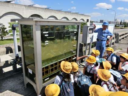 柴島浄水場では多くの行程を通して、水をきれいにしていることが分かりました。また、その過程で出るスラッジというものを見ることもできました。このスラッジは埋め立て地などに再利用されるそうです。