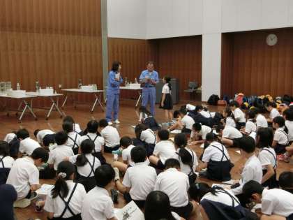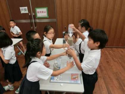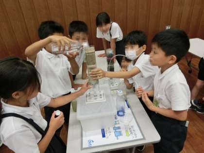 浄水場の見学のあとは室内に入り、浄水場についての映像を見たり、実験をしたりしました。