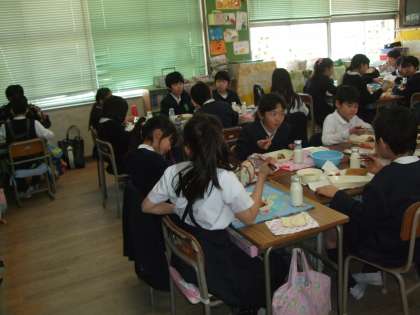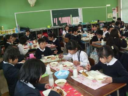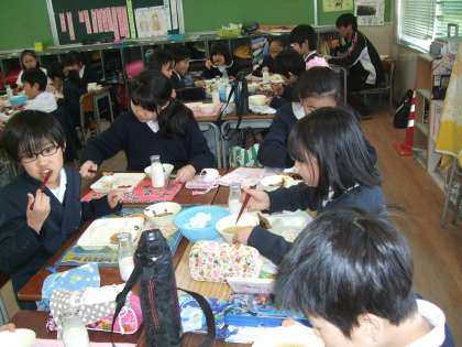 みんなで静かにモクモクと食べています。この教室でみんなと一緒に食べるのも、あと5日となりました。
