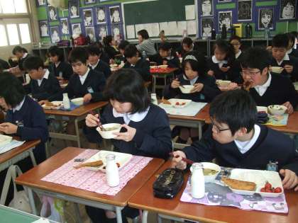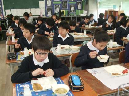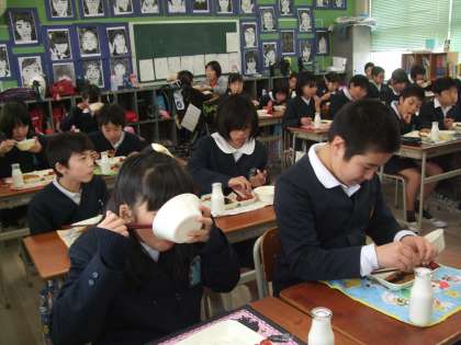 5年生は、食べるスピードも早いです。お替りもしっかりしていました。