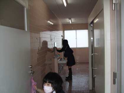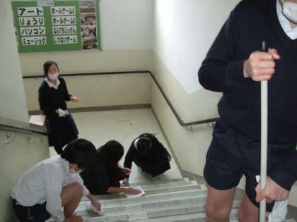 関目小学校では、毎年卒業式前に6年生が、普段手の届きにくい所を