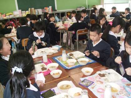 今日は、給食のおかず数が多かったのですが、手際よく準備しておいしく