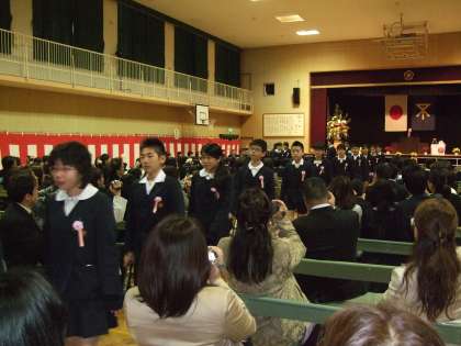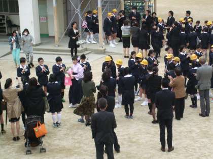 卒業式を無事に終え、5年生や地域や保護者の方々の作る花道を通って