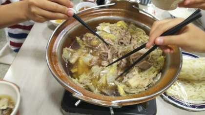 本日の夕食のかも鍋を昼間に流した汗の上にさらに汗をかきながら、仲良くいただきました。