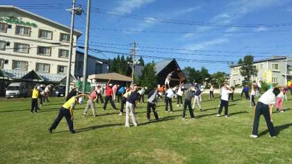 1日目の活動の疲れや、興奮してなかなか寝付けないことで、午前6時の起床がつらかった子も少しいたようですが、澄んだ空気のもとラジオ体操を行うことで、体も心もすっきりと目覚めたようです。