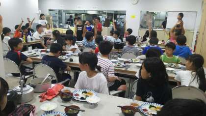 記念撮影も行った後は、本日の午前中の林間学習最大の活動であるオリエンテーリング(山登り)に備えての朝食タイムが始まりました。