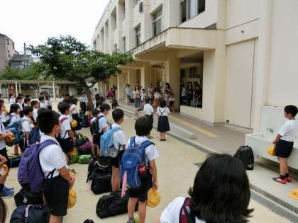 大阪では少し雨がぱらつきかけましたが、帰校式では雨が止み、運動場にて帰校式を行いました。