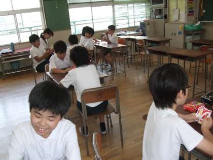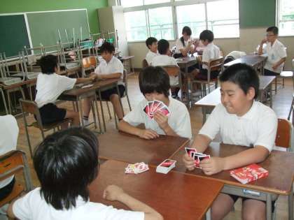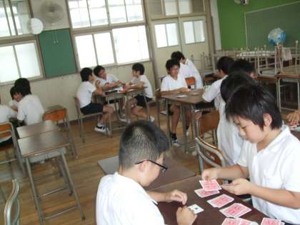 オセロにウノ。トランプゲーム・将棋など室内で楽しむゲームをしています。時には、オリジナルのゲームも作るようです。対戦相手をかえて他の学年の人とも仲良く過ごすようにしています(^0^)