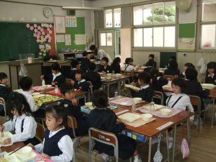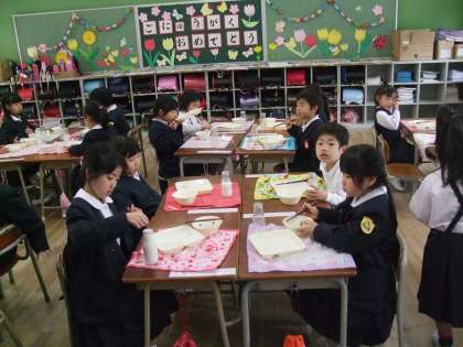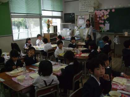 今日は1年2組の給食の様子をみに行きました(^^♪