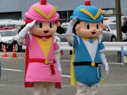 大阪府警のマスコットのフーくんやケイちゃんも来て、楽しく交通安全を学びました。
