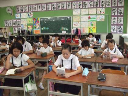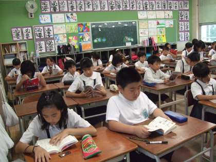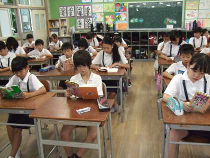 教室をのぞくと静かに読書に集中しています。「放課後の怪談」シリーズ・「怪異 百物語」ここでも怪談物が読まれています。「ナルニア国物語」・「大阪市の歴史」・「みそのひみつ」も読まれていました。