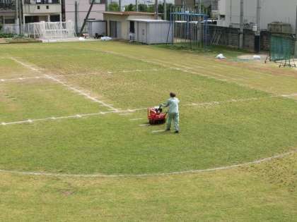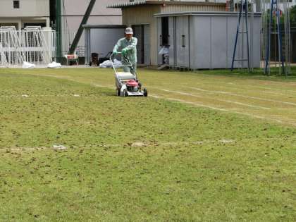 オーバーシード作業により、しばらく東運動場の使用はできませんが、3週間後に育つ美しい芝生を楽しみにしていてください。