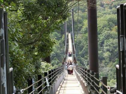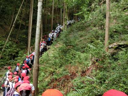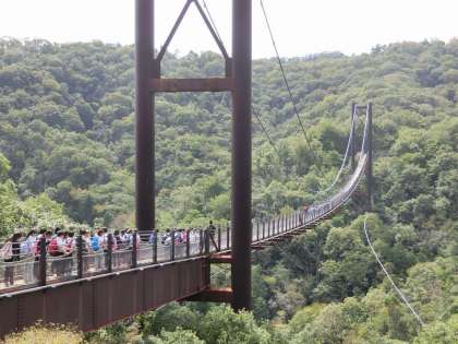 高いところからの景色なので、少し怖がりながらつり橋を渡る児童もいましたが、楽しみなお弁当に向けて頑張りました。
