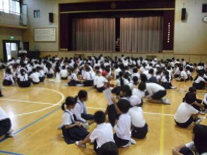 今日の児童朝会は?BOXでした。集会委員が箱の中に入っている物の特徴を言い、各班で推測してあてるというものでした。子どもたちは、班で話し合って楽しく過ごすことができました。