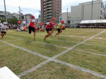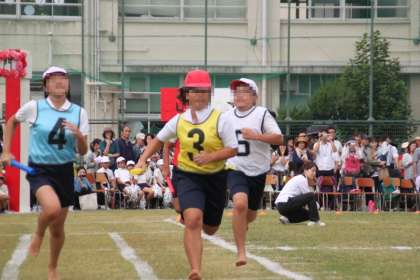 最高学年によるリレーは迫力満点でした。勢いのある走りとスムーズなバトンパスに見ている人みんなが引き込まれていました。