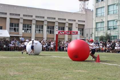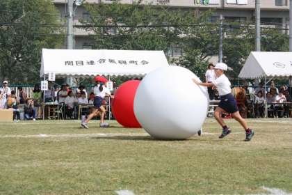 自分たちと同じくらいの大きさの大玉を、協力して転がしている姿に自然と歓声も大きくなっていました。