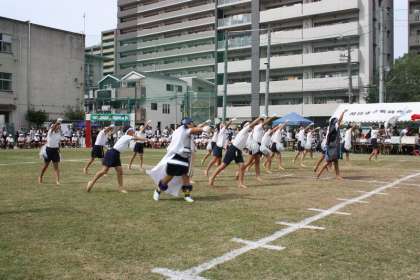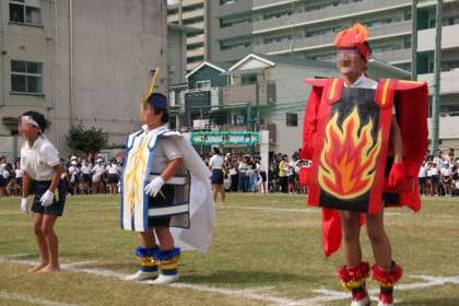 熱い運動会をさらに盛り上げる応援団のエール交換、応援合戦です。