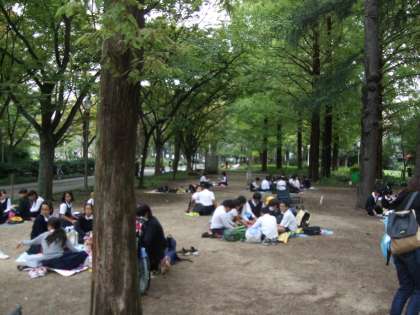 ミュージカルが終わった後は靱公園で昼食をとりました。今週もずっと雨だったのですが天候にも恵まれ、公園で食べることができました。