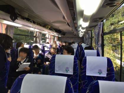 バスの中ではみんなで計画したレクリエーションが行われ、盛り上がりを見せています。道中も大きな渋滞がなく順調に休憩場所である上野ドライブインへ到着しました。