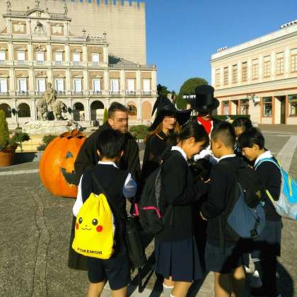 特にハロウィンということもあり、仮装しているキャストの方からも何か楽しませていただいているようです。