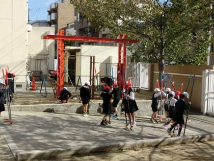 休み時間には竹馬が一本も残らず、利用されています。