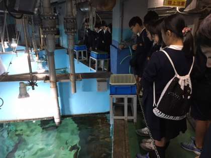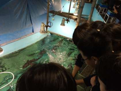 夜の水族館で、海の生き物たちの夜の様子が見ることができます。普段は見れないバックヤードも見学でき、児童の目はさらに一段と輝いていました。