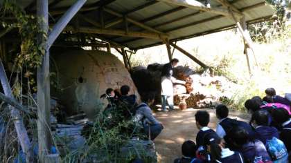 薪や窯の説明を聞いた後、大きな登り窯を近くまでよって見ることが出来ました。