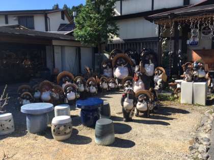 さすが、たぬき村というだけあり、たくさんのたぬきの信楽焼きがおいてあり、ひとつひとつが愛嬌のある顔で関目の児童を歓迎してくれました。