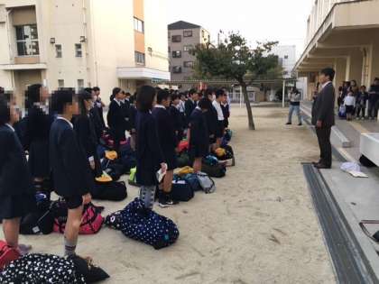 帰校式では、校長先生から今回の6年生の頑張りに対する称賛の言葉のあと、児童代表がお迎えに来られた多くの保護者の方に、無事に帰ってきたことを報告しました。