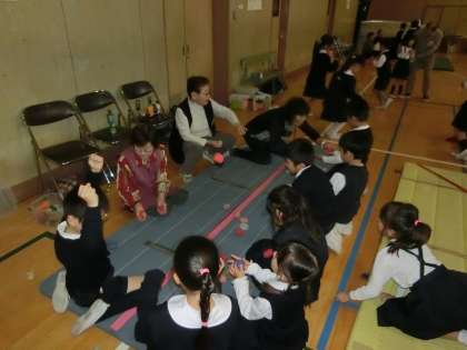 この昔遊び体験は、本校で毎年していただいており、10年以上も前から続いている行事で、1年生みんなが楽しみにしていました。