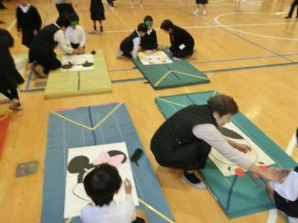 挨拶のあとは、講堂内に設けてあるそれぞれの遊びのコーナーで、児童は順番にそれぞれを体験します。