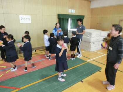 また、体験の後は地域の方から紙風船のプレゼントがあり、こちらも遊び方を教えていただきました。児童の目が嬉しそうに輝き、紙風船での遊びを楽しんでいました。