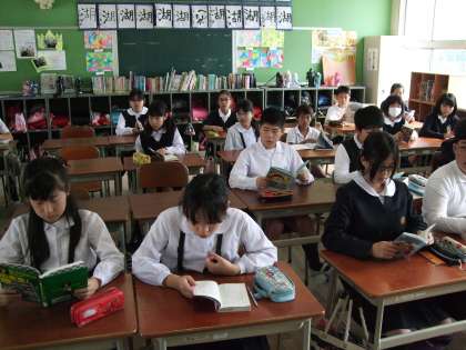 6年生は一言もしゃべらず本の世界に集中していました。