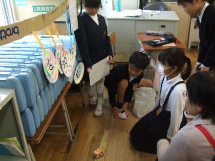 児童が作ったおもちゃは、「魚つり」「紙ずもう」「とことこカメ」などがあり、いろいろな工夫がされていました。また、お店ごとに手作りの素敵な景品も用意されており、それを選ぶ児童の顔も真剣でした。