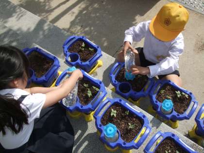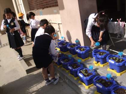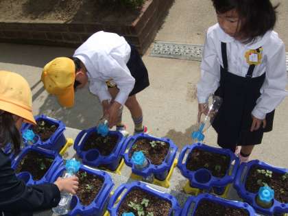 1年生も登校したらすぐに水やりをして、その成長を楽しみにしています。