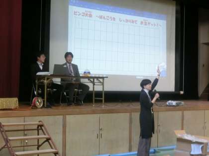 「ビンゴ!!!」「シュート!!!」体育館いっぱいに掛け声が響き渡ります。全員、景品をもらえて笑顔いっぱいです。今日は、楽しい一日でした。PTA青少年活動委員の皆様、保護者ボランティアの皆様ありがとうございました。